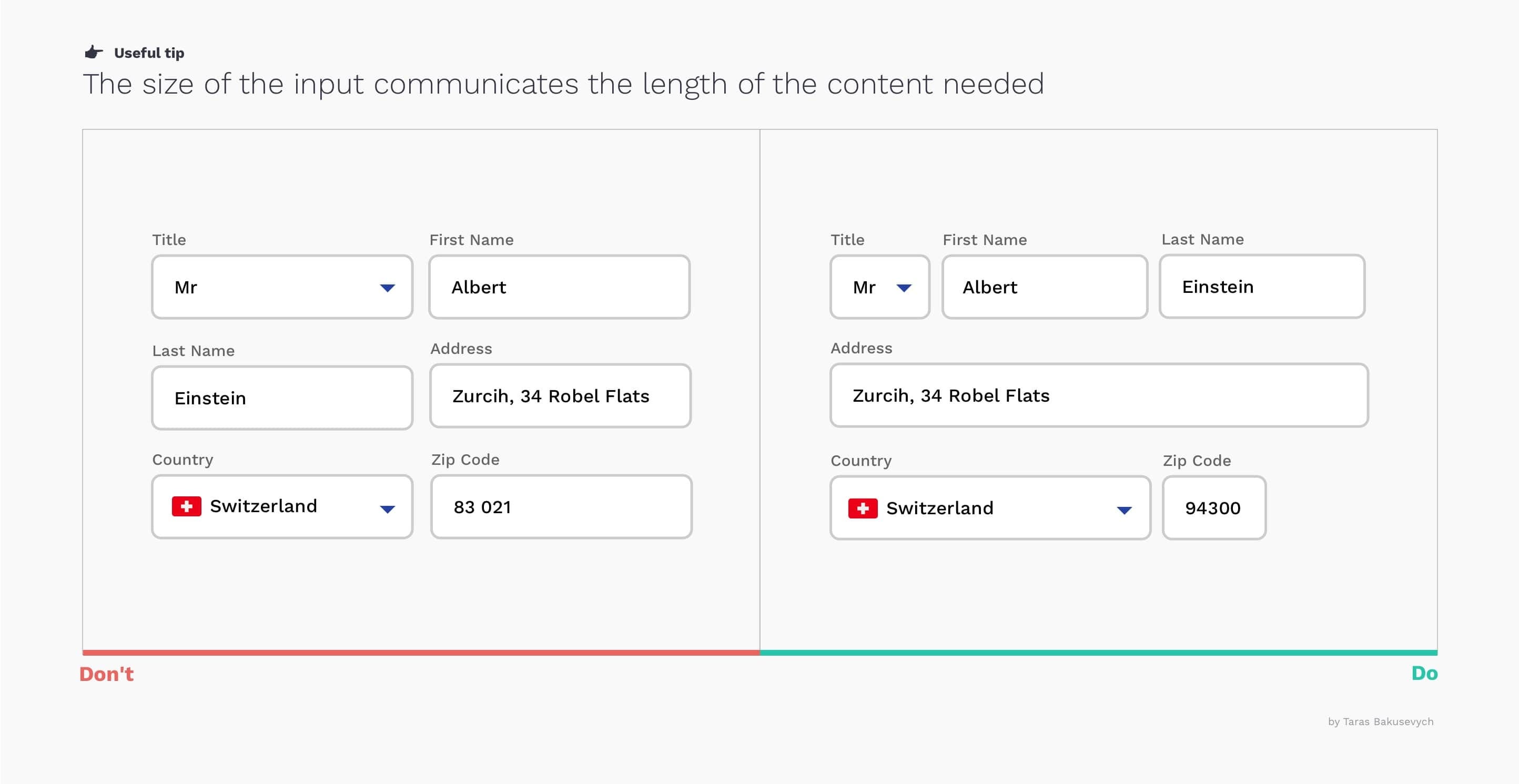 Usar comprimento de entrada idêntico para todos os campos de texto em seus formulários os tornará visualmente agradáveis, mas será mais difícil de concluir.