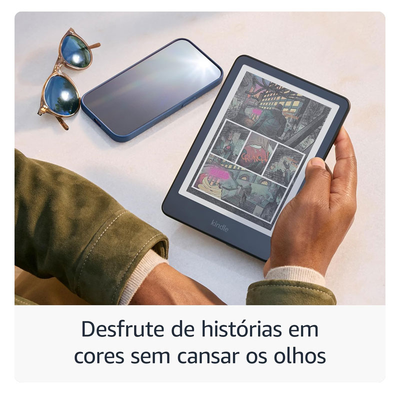 Leia em cores – A nova tela Colorsoft de 7” oferece alto contraste suave aos olhos, com cores semelhantes ao papel que dão vida às capas e ao conteúdo. Destaque suas passagens favoritas em amarelo, laranja, azul e rosa.