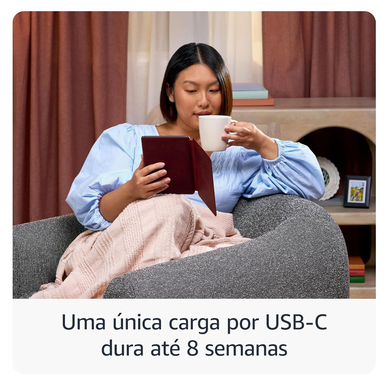 Maratona literária – Uma única carga por USB-C dura até 8 semanas.
