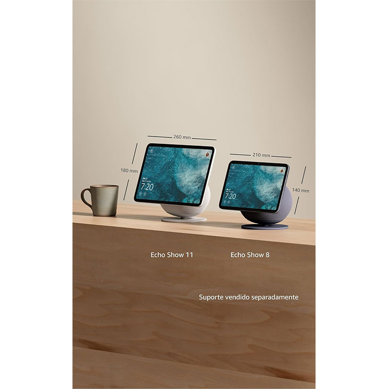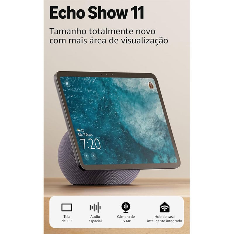 NOVO TAMANHO, MAIS ÁREA DE VISUALIZAÇÃO — Com design integrado, o smart display oferece uma tela Full HD vibrante de 11″ sensível ao toque, com área de visualização 60% maior em comparação ao Echo Show 8 (3° Geração), desempenho rápido e hub de casa inteligente integrado. Além disso, suas músicas e programas favoritos terão um som incrível com o áudio espacial envolvente.