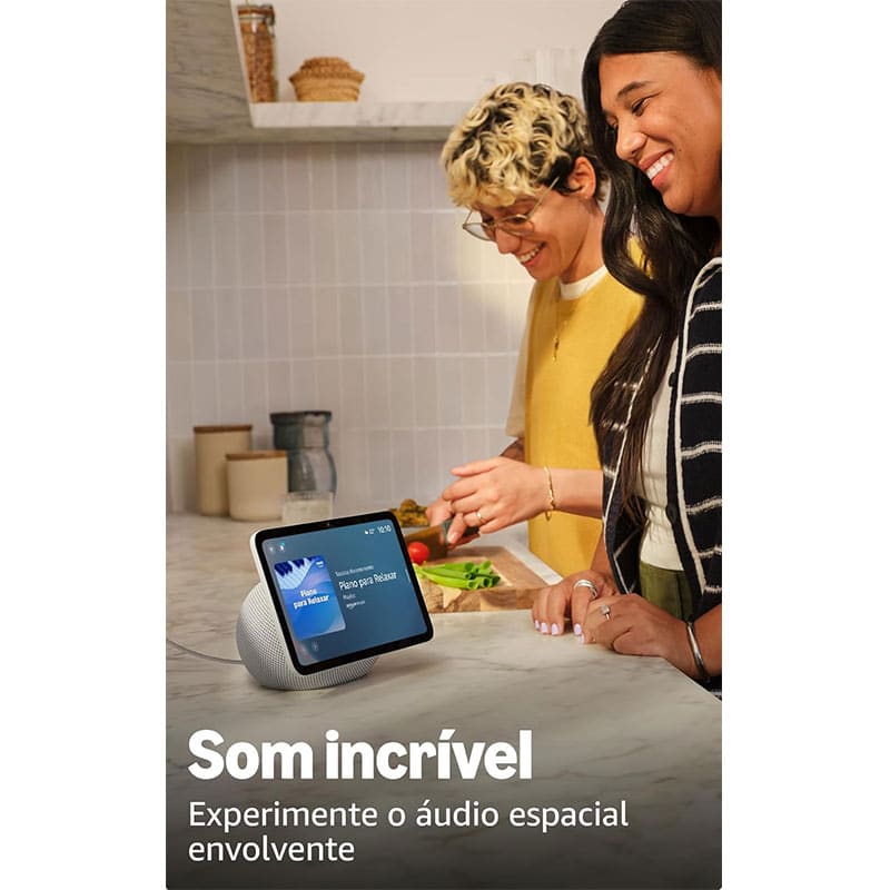 Novo de todos os ângulos. Completamente redesenhado com uma tela mais fina, processamento rápido e áudio espacial envolvente. Forma e fluidez se encontram. Conheça seu smart display versátil com hub de entretenimento integrado, tudo em um só lugar