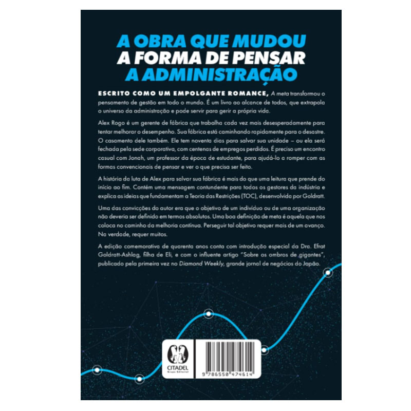 A história da luta de Alex para salvar sua fábrica é mais do que uma leitura que prende do início ao fim. Contém uma mensagem contundente para todos os gestores de negócios e explica as ideias que fundamentam a Teoria das Restrições (TOC), desenvolvida por Goldratt.