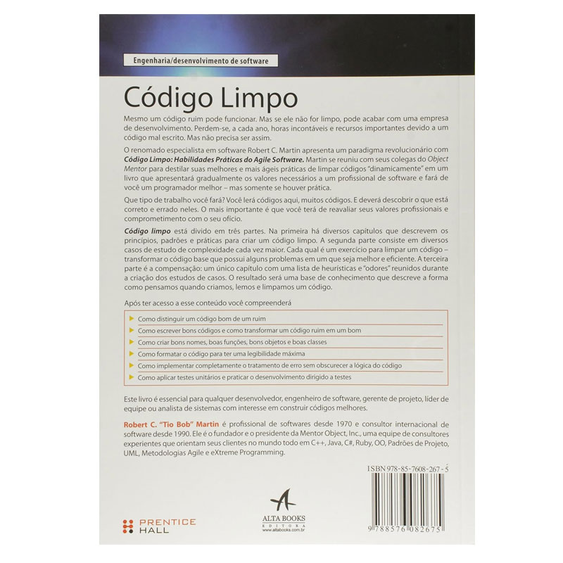 Este livro é essencial para qualquer desenvolvedor, engenheiro de software, gerente de projeto, líder de equipes ou analistas de sistemas com interesse em construir códigos melhores.