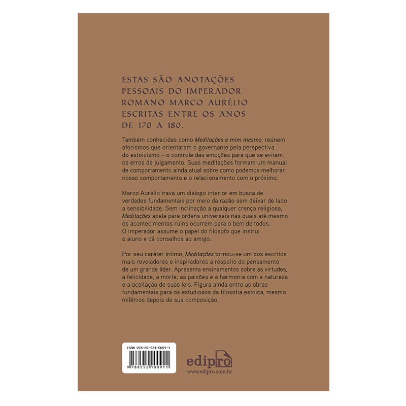 Também conhecidas como Meditações a mim mesmo, reúnem aforismos que orientaram o governante pela perspectiva do estoicismo – o controle das emoções para que se evitem os erros de julgamento.