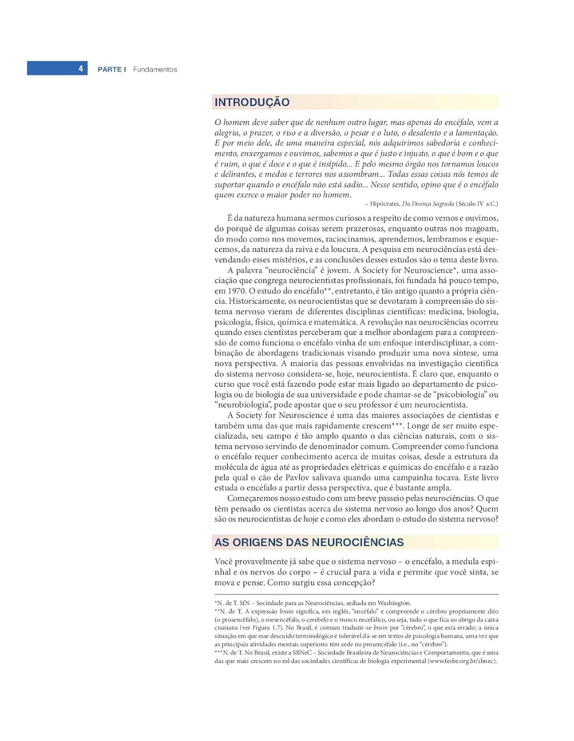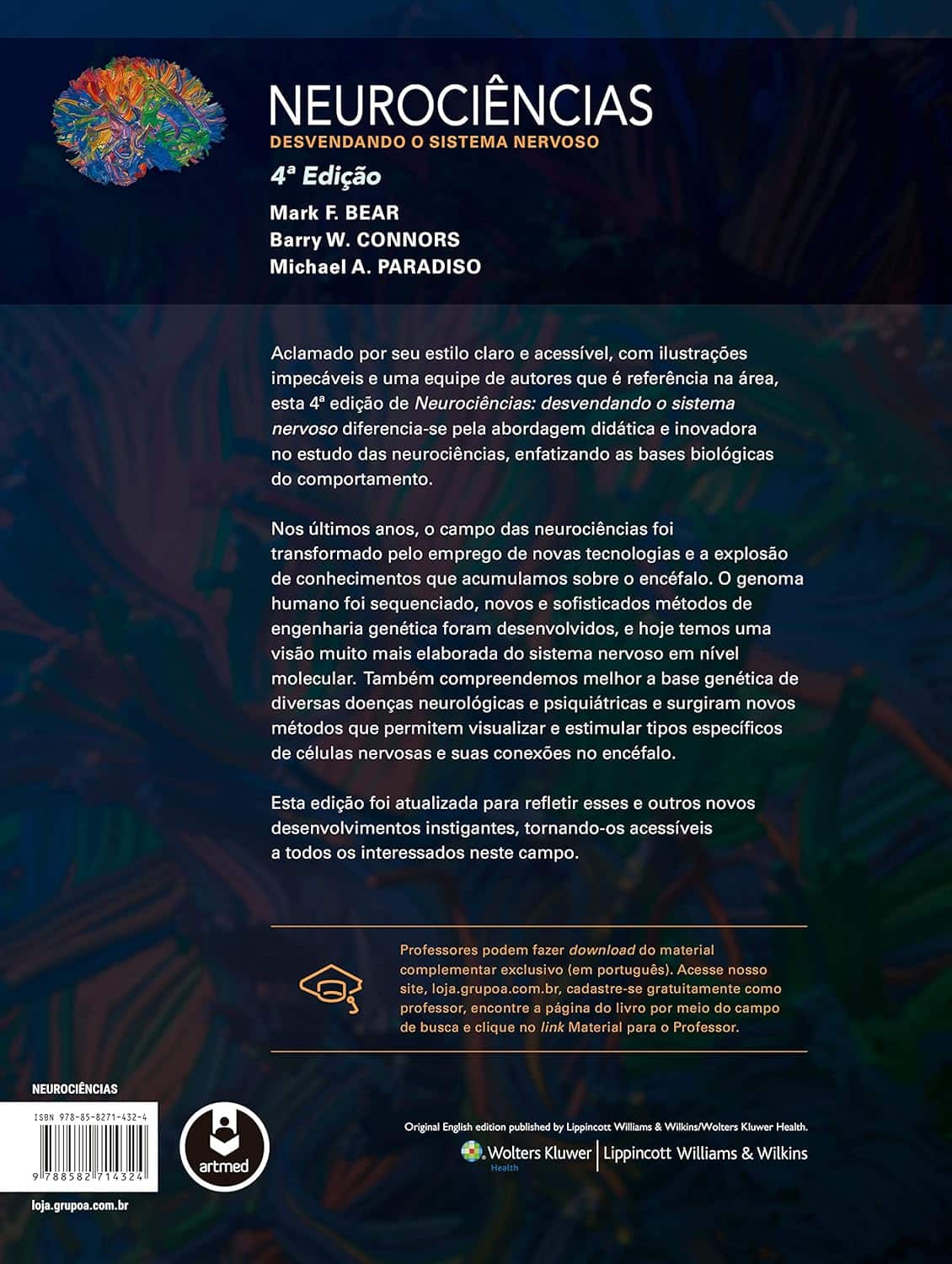 Aclamado por seu estilo claro e acessível, com ilustrações impecáveis e uma equipe de autores que é referência na área, esta 4ª edição de Neurociências: desvendando o sistema nervoso diferencia-se pela abordagem didática e inovadora no estudo das neurociências, enfatizando as bases biológicas do comportamento. Nos últimos anos, o campo das neurociências foi transformado pelo emprego de novas tecnologias e a explosão de conhecimentos que acumulamos sobre o encéfalo. O genoma humano foi sequenciado, novos e sofisticados métodos de engenharia genética foram desenvolvidos, e hoje temos uma visão muito mais elaborada do sistema nervoso em nível molecular. Também compreendemos melhor a base genética de diversas doenças neurológicas e psiquiátricas e surgiram novos métodos que permitem visualizar e estimular tipos específicos de células nervosas e suas conexões no encéfalo. Esta edição foi atualizada para refletir esses e outros novos desenvolvimentos instigantes, tornando-os acessíveis a todos os interessados neste campo.
