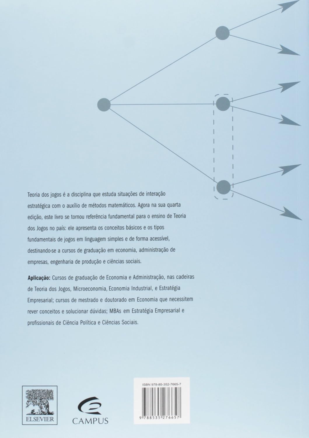 Teoria dos Jogos 4ª edição tem como objetivo difundir os conhecimentos de jogos para todos aqueles que precisam entender de estratégias para o melhor desempenho de duas atividades profissionais. Assim, é preciso conhecer como a interação entre indivíduos ou organizações, que agem estrategicamente de acordo com os seus interesses, pode ser estudada objetivamente com métodos matemáticos. Respostas aos exercícios propostos estão disponíveis ao final de cada capítulo.